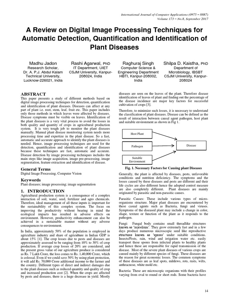 A Review on Digital Image Processing Techniques for | Image Segmentation | Plant Pathology
